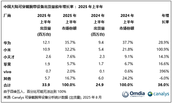 快科技9月10日音书,据Canalys(现并入Omdia)最新数据败露,2025年上半年开云体育(中国)官方网站,中国大陆可衣服腕带配置出货量飙升至3390万台。